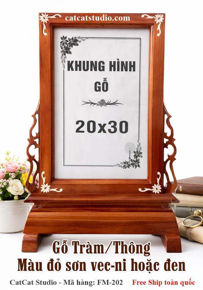 Khung ảnh thờ gỗ hương 20x30 chạm khắc hoa văn truyền thống, màu gỗ tự nhiên, thiết kế trang nghiêm cho bàn thờ gia tiên
